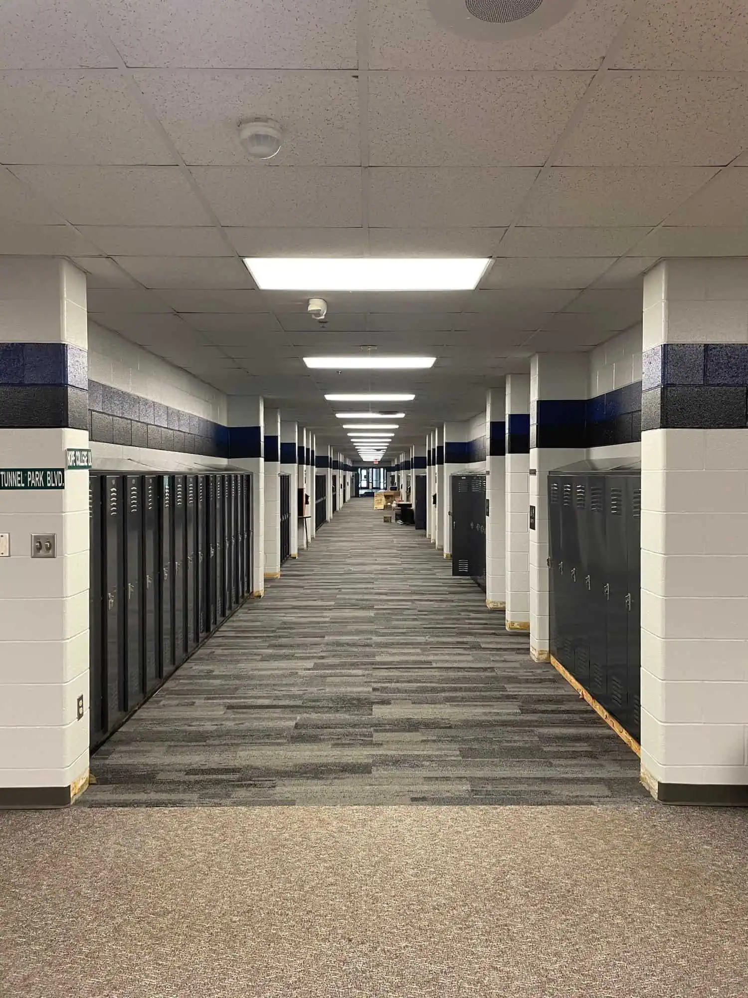 The type of paint finish is just as important as the color. Interior painting for education facilities should balance durability and ease of cleaning. Eggshell or satin finishes work best for classrooms since they can handle frequent wiping without losing their finish. Semi-gloss is a smart option for hallways where scuff marks happen daily. And for all spaces, low-VOC paints for classrooms are a healthier choice.