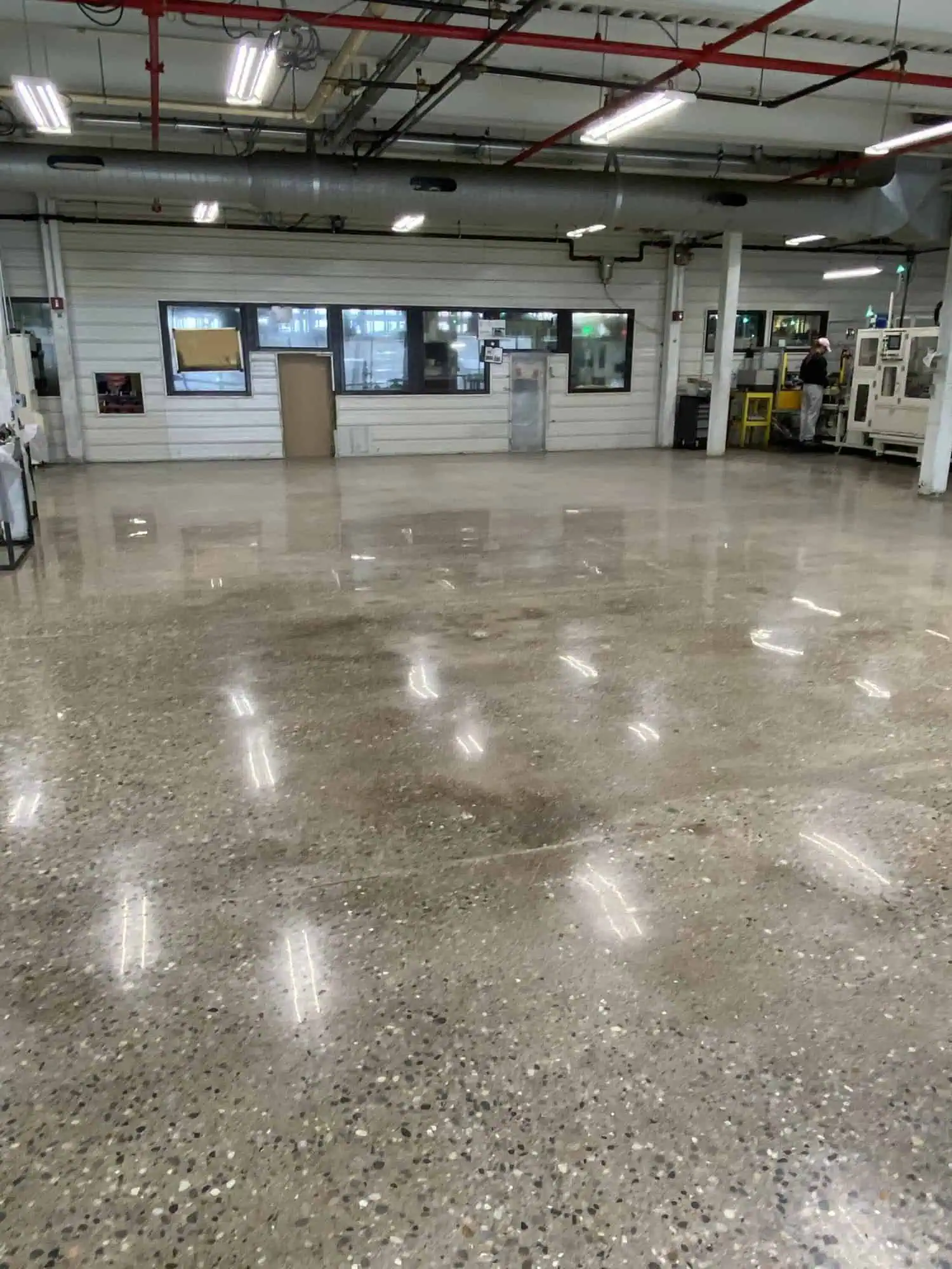 Musashi is an existing automotive manufacturing facility. In the assembly area in the back of the plant the floor had a 3/8” trowel down coating with Epoxy topcoats. H & H Painting removed the existing trowel down coating using PCD’s on a large grinder. Once all of the trowel down epoxy coating had been removed we then diamond ground, polished, and densified the concrete to an 800 grit level.