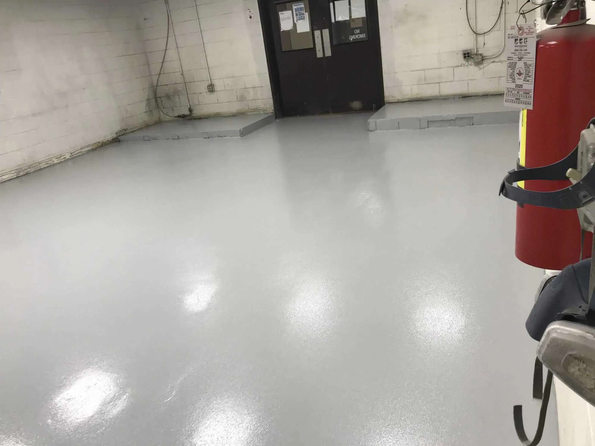 This project was an old break room with a VCT tile. All the tile was removed exposing some large holes and cracks in the concrete. These were patched with a combination of Epoxy patch materials and urethane cement. All patchwork was diamond ground to a smooth surface and a three-coat 100% solids epoxy coating with anti-slip was applied.
