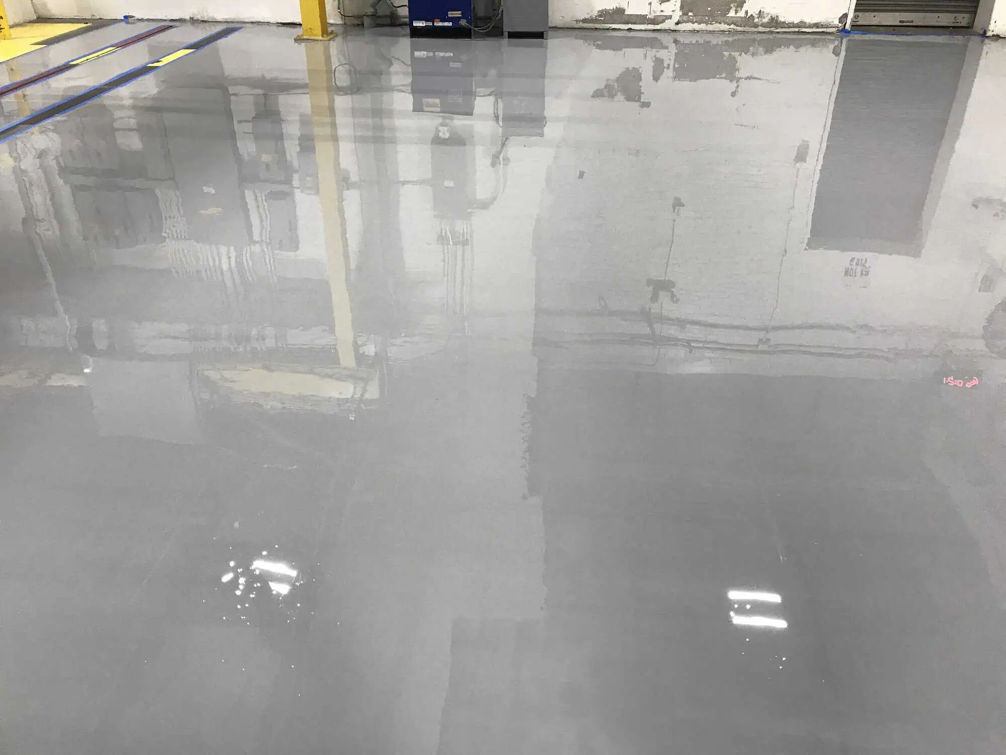 This project was in an older section of the plant that they had removed the machinery out of the area in prep for a new line of equipment. The area had existing coatings, we used diamond grinding to remove all of the existing coatings. Once all of the old coatings were off the floor we patched and filled cracks. Then we applied a 100% solids Epoxy primer, a 100% solids Epoxy intermediate coat followed by a Polyaspartic top coat.