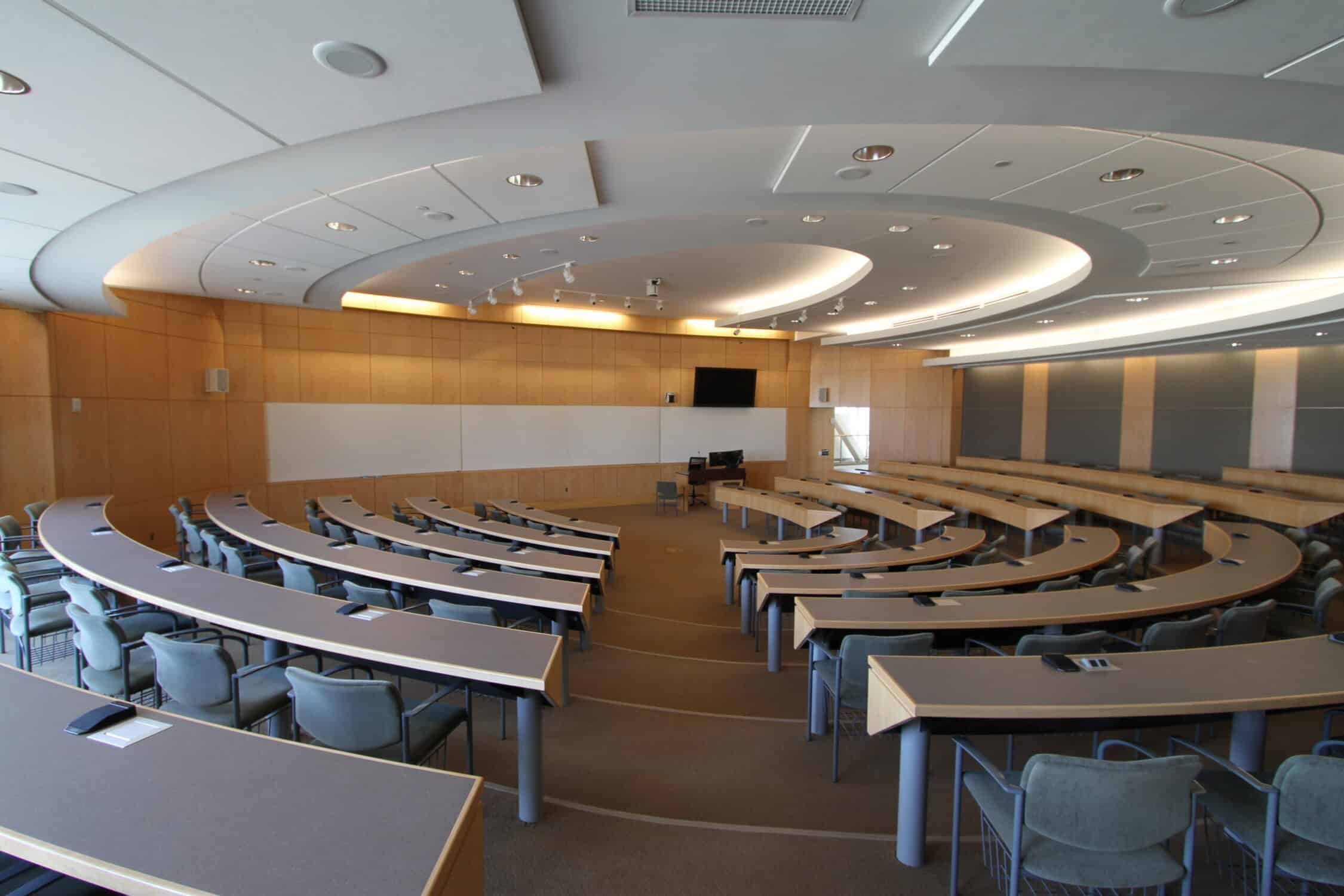 As the project reached completion, the Secchia Center emerged as a cohesive, polished environment that supports advanced medical education while meeting demanding safety standards. Natural light glides across metallic steel surfaces, revealing subtle texture and depth without distraction. Interior spaces feel composed and intentional, reinforcing a sense of trust and professionalism from the moment occupants step inside.