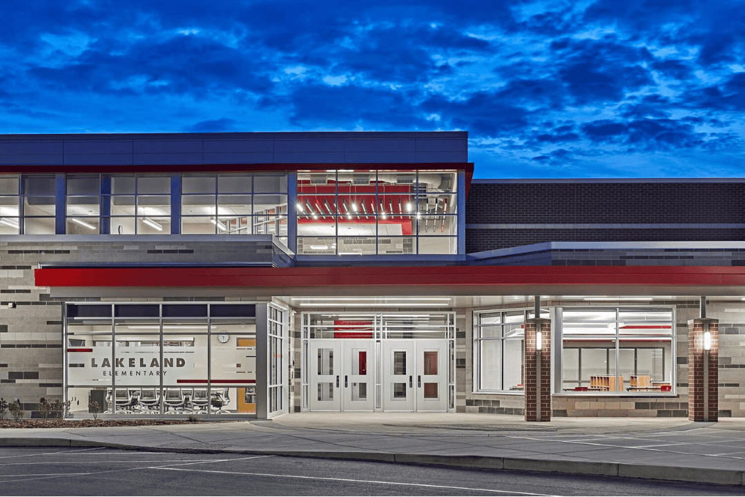 Students now enter a space that feels organized, vibrant, and secure. The campus like setting is reinforced by cohesive color transitions that connect the elementary facility to the neighboring middle and high schools. The finishes contribute quietly yet powerfully to the overall atmosphere.